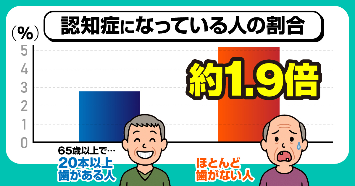20本以上ある人に比べて認知症のリスクが約1.9倍も高いという結果がでています。