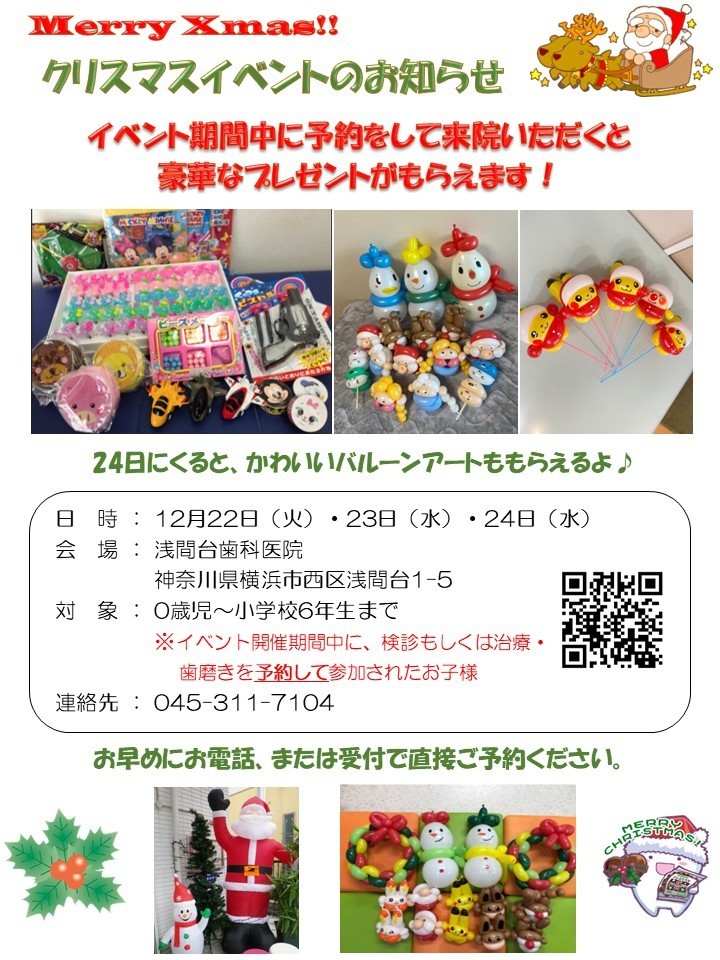 早いものであと10日もすると12月になります。12月といえば・・・そうクリスマス!浅間台歯科医院では、今年も毎年恒例のクリスマスイベントを実施します。